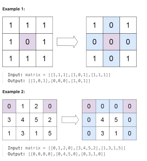 Given an m x n integer matrix matrix, if an element is 0, set its entire row and column to 0's. You must do it in place.